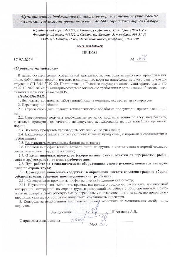 Фотоотчет 19.01.2023 в МБДОУ Детский сад №244 г.о. Самара осуществлен родительский контроль за организацией питания
